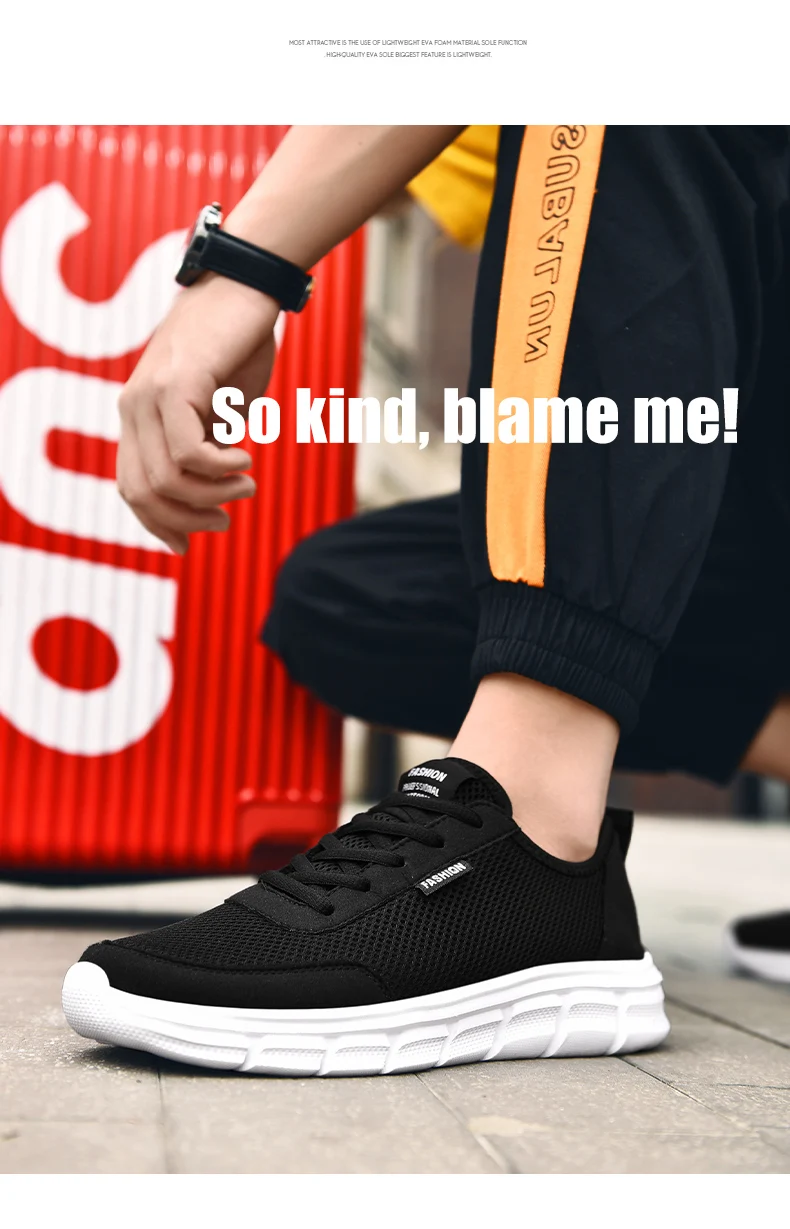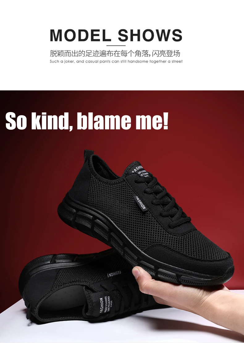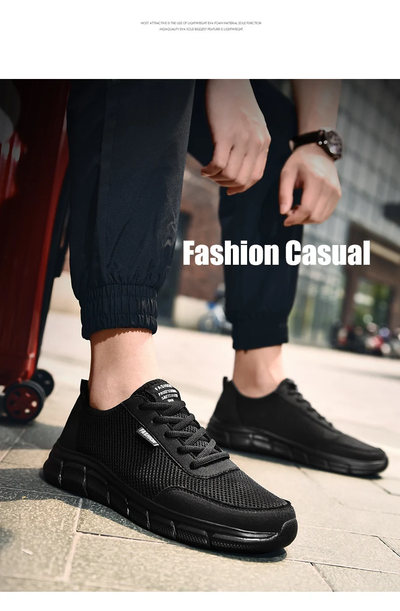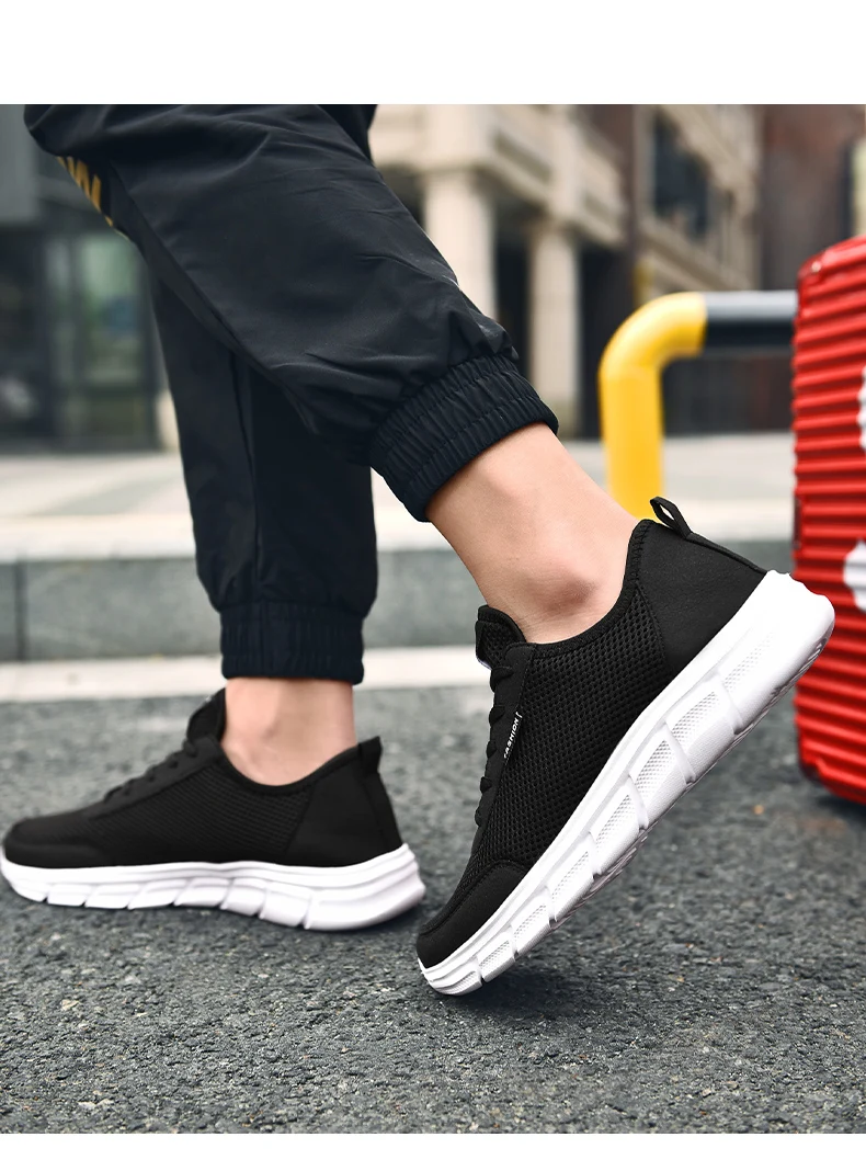 YRZL New Sneakers Men Breathable Mesh Lightweight Casual Walking Man Shoes Big Size 39-48 Comfortable Black Sneakers for Men